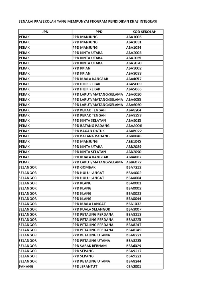 Senarai Sekolah Program Pendidikan Khas Integrasi XLSX Paling Popular. Program Road Show Kolej Vokasional Keningau Pendidikan Khas akan diadakan di seluruh Sabah dalam jangka masa terdekat ini jangan. Senarai sekolah pendidikan khas integrasi di pulau pinang kronis n.